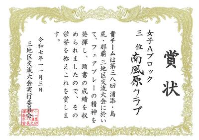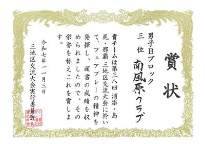 11/3(月)第38回浦添・島尻・那覇3地区交流大会において 女子Aブロック「3位」、男子Bブロック「3位」の成績を収めたという嬉しい報告がありました。 南風原クラブ(バレー)の皆さん おめでとうございます。