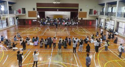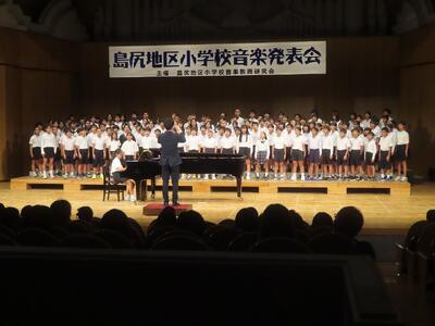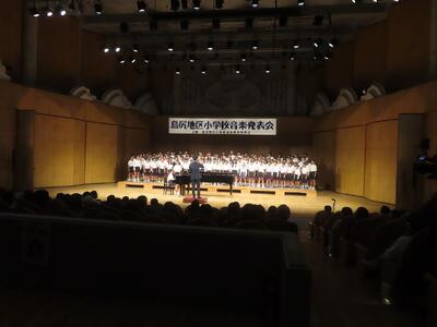 6年生は島尻地区音楽発表会にむけて2学期から学年合唱に取り組みました。1・2組をソプラノ、3・4組をアルトとし2部合唱の難しさ、そして楽しさを感じながら練習に励んできました。音楽の授業での取り組みの他にも11月からは体育館での全体練習、また昼休みに毎日練習を行い意欲的に頑張ってきました。