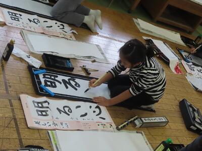 1月7日(水)校内書き初め会がありました。 1,2年は硬筆、3年~6年は毛筆で、一年の始まりに抱負や願いを筆に込めて書くことで、心を整え、新しい一年を清らかな気持ちで迎えられるそうです。 3年生には、「学校応援隊はえばる」の長尾栄正先生、平良龍洸先生、野原由美子先生が講師として指導頂きました。ありがとうございます。