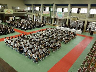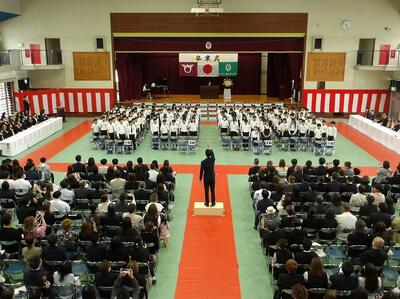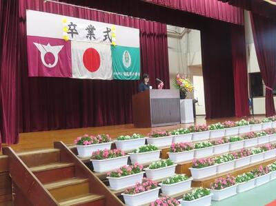 3月23日 1年~5年の「修了式」、卒業生も参加しての「離任式」が行われました。