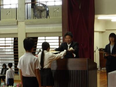 JA共済全国小・中学生書道コンクールにおいて、条幅の部で、4年金川愛さん「優秀賞」、3年:大城優奈さん「優秀賞」、5年:平良鴻奈さん「優良賞」、半紙の部で5年:平良鴻奈さん「優良賞」、3年:新垣瑠空さん「優秀賞」の成績を収めたという嬉しい報告がありました。 おめでとうございます。