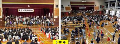 1月18日(日) 令和7年度第2回学校公開日に「学習成果発表会」を実施しました。 これまでの学習(朝の学習、国語、生活、音楽、体育、総合的な学習の時間等)の成果を保護者やおじいちゃん、おばあちゃんの前で披露することができました。 1月15日(木)のリハーサルよりもバッジョンアップした演技を見せることができたようです。ご参観していただいた皆様、ありがとうございました。