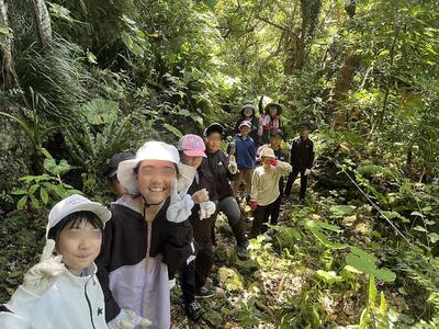 ウォークラリーがはじまりました。 自然の木や植物、岩など直接ふれあいながら友達と一緒に体験学習しています。