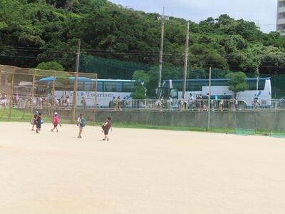 1日目のキャンドルファイヤーの様子です。レク終了後には、南風原小学校PTAから提供いただいた「パン」と「飲み物」をおいしくいただきました。