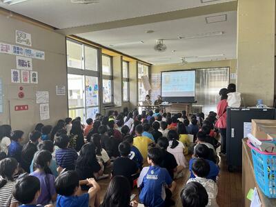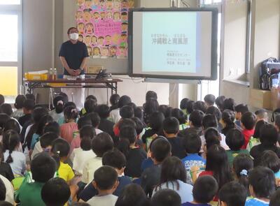 6月13日(金) 4年生は平和学習として、 沖縄戦や一般疎開について講話を通して正しく理解し、自分たちのできる平和活動について考えることができました。
