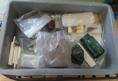 6月13日(金) 3年生は、平和学習の講話として「沖縄戦と平和」について、町文化センターの学芸員による陸軍病院20号壕の説明や実際の戦争の遺物に触れる体験学習等をしました。