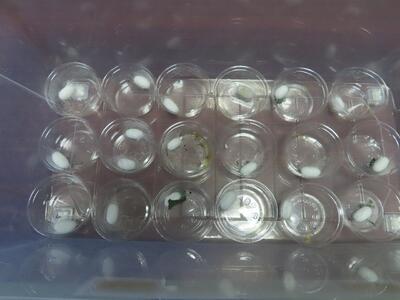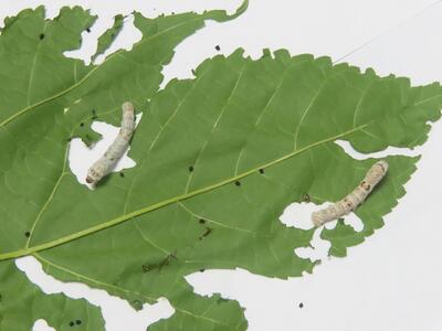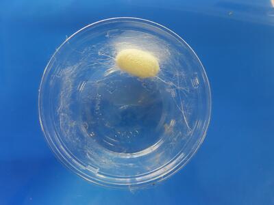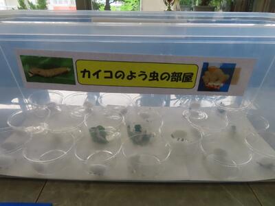 3年生の理科の昆虫の観察に関連して「カイコ」の成長を児童玄関で子ども達と観察しました。