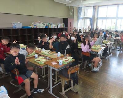 3月18日(火)で令和6年度の「小学校給食最終日」でした。メニューは「ポテトのバジルソテー」「ウィンナーのソースかけ」「コッペパン」「コンソメスープ」「おいわいデザート」「牛乳」でした。 6年生にとっては、小学校最後の給食になりました。