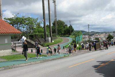 5月23日(金)2校時~3校時 「地震・津波避難訓練」を実施しました。南風原幼稚園とも連携しながら第1避難場所が「運動場」、第2次避難場所が「黄金森野球場」とし、幼稚園と5年生、1年生と6年生は一緒に避難できました。