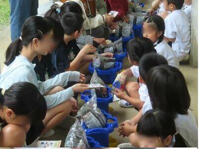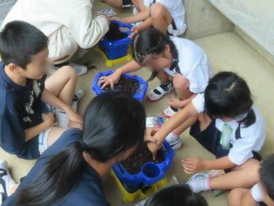 4月18日(金)に1年生と6年生が一緒になって、アサガオのタネの植え付け作業をしました。