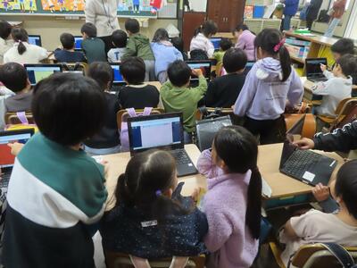 2月21日(金)に次年度入学予定の幼児が、南風原小学校1年生の教室で「はえばるっこ 探検ツアー」に参加してくれました。 1年生が学校行事の説明をし、さらに1年生のお兄さん、お姉さんが幼稚園生や保育園生にタブレットを教える姿も見られました。