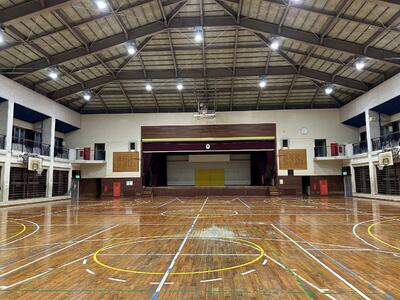 体育館のLED作業が完了しました。 ボタンを押すと瞬時にライトが点灯して、まるで真新しい体育館を見ているような錯覚でした。 スポーツ少年団(バレー、ミニバスケット)も明るい体育館で活動ができますね!