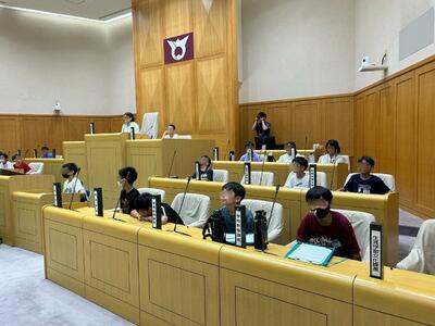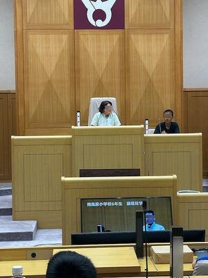 5月7日(水)6年生が社会「わたしたちの暮らしを支える政治」の学習の一環として、町議会場見学および町議会議員から町議会の働きや役割について勉強しました。
