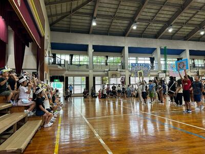 5月15日(木)、1年生を新しい仲間として温かく迎え、1年生にとっては、学校を好きになるきっかけとなるような活動をすることをねらいに1年生~6年生が体育館に集まり「1年生を迎える会」を実施しました。 楽しそうな1年生の笑顔が見られました。