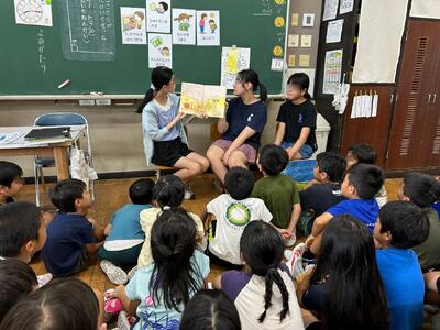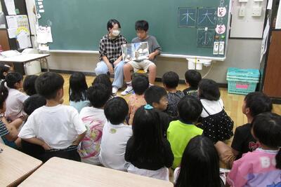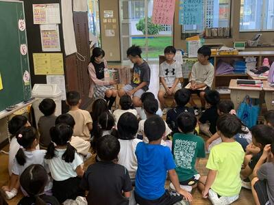 子ども達の読書意欲を高め、読書の楽しさを味わわせることをねらいに読書月間が行われています。その取り組みの一環として、「図書委員による読み語り」が1年生の教室で9月9日に実施されました。