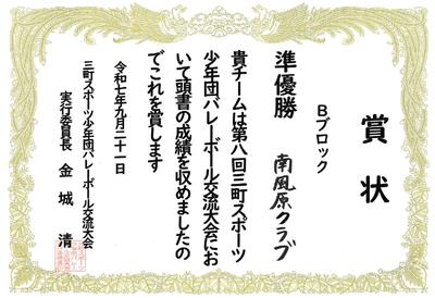 9月21日の第8回3町スポーツ少年団バレーボール交流大会において、Aブロック「優勝」 Bブロック「準優勝」の成績を収めたという嬉しい報告がありました。 南風原クラブの皆様 おめでとうございます。