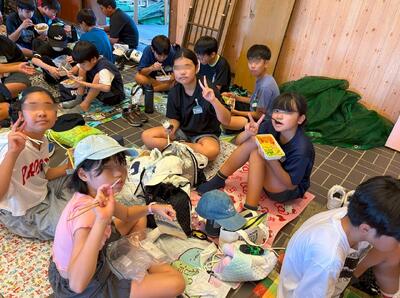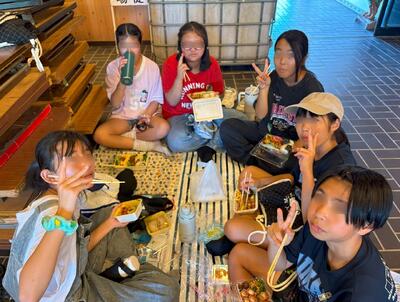 9月26日 修学旅行のお昼ご飯の様子です。 各家庭からの手作りのお弁当をおいしそうに食べていました。 弁当つくりありがとうございました。