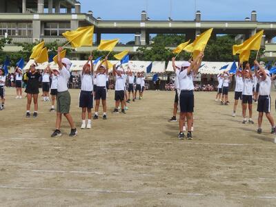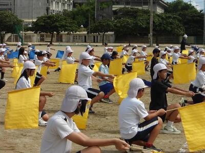 体育成果発表会リハーサル 10/23 5年 投稿: 校長 (10/24) 10月22日に予定されていたリハーサルが、天候不良のため10月23日に実施されました。 5年生は、 フラッグパフォーマンスと学級対抗リレーを頑張っていました。