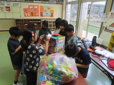 今年度も「おりがみツリー」を頑張ってくれました! 投稿: 校長 (12/07) 沖縄県立南部医療センター・こども医療センターに入院中の子どもたちの1日でも早い回復を願って折り紙を折り、巨大なクリスマスツリーを完成させるプロジェクトに今年度も南風原小学校は参画させてもらっています。 子ども達が自主的に折り紙をおって、それにやさしい言葉をそえています。 12月1日に児童会代表が届けてくれました。