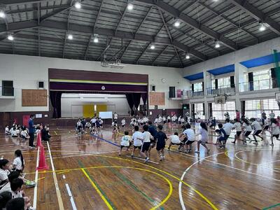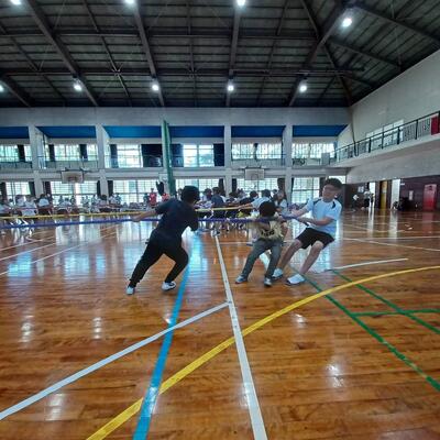 4学年 親子レク 投稿: 校長 (17:50) 12月8日(月) 6校時に「4学年 親子レク」が開催されました。 各学級対抗で「五色綱引き」大会をしました。 平日の忙しい時間帯ではありましたが、45名の保護者が参加してくれたようです。子どもも保護者も先生方も楽しめたようです。