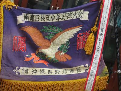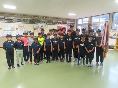 宮兼ビギンズ 初優勝報告会 投稿: 校長 (12/19) 12月19日(金) 第153回沖縄県学童秋季軟式野球大会南部Bブロック予選で「初優勝」の成績を収め、県大会出場に出場する宮兼ビギンズの皆さんが優勝報告にきていました。優勝旗は1年間校長室で保管することになりました。創部14年目での初優勝、そして 明日から県大会が始まるそうです。 宮兼ビギンズの皆さん がんばってください。