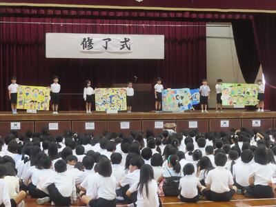 修了式・離任式(3/23) 投稿: 校長 (03/25) 3月23日 1年~5年の「修了式」、卒業生も参加しての「離任式」が行われました。1年生の代表8名が学校生活での1年間の成長を堂々と発表してくれました。離任式では、本校から離任する教職員が最後のスピーチを子ども達にしてくれました。