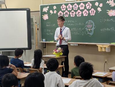 4月8日の就任式では、「児童が話し手をしっかり見て話を聴く姿」や「背筋を伸ばした座り方」、「心のこもった校歌の歌声」などに感動しました。