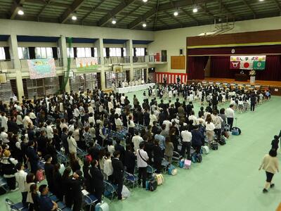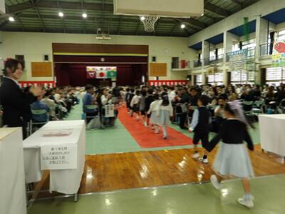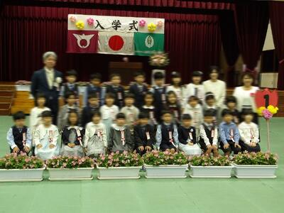 4月9日の入学式では、新一年生は緊張しながらも最後まで式に集中して参加ができました。来賓や多くの保護者に見守られながら立派な姿を見せることができました。